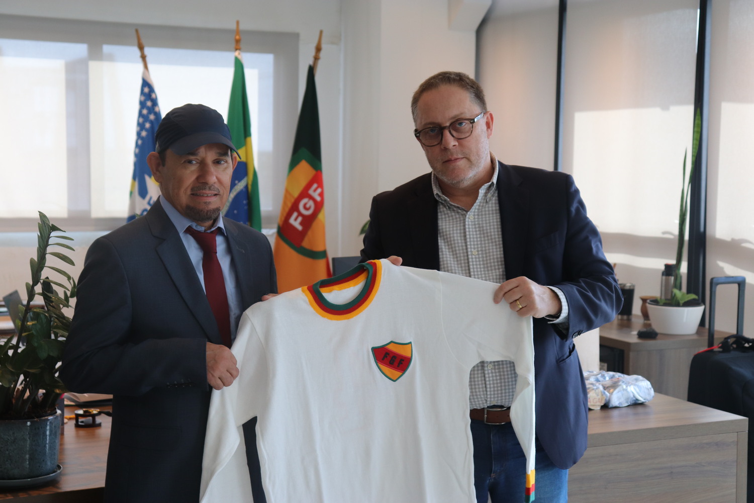 Os palestrantes foram recepcionados, durante a tarde, pelo presidente da FGF, Luciano Hocsman. A saudação de boas-vindas contou com a participação do secretário-geral, Mauro Rocha, do diretor financeiro, Marcelo Ducati, do diretor jurídico, Gilson Kroeff, e do diretor de segurança e ouvidor geral de competições, Rogério Stumpf. Também participaram os coordenadores do projeto FGF Conecta, Ademir Calovi e José Cícero Moraes, e a coordenadora de comunicação da FGF, Christiane Matos.
