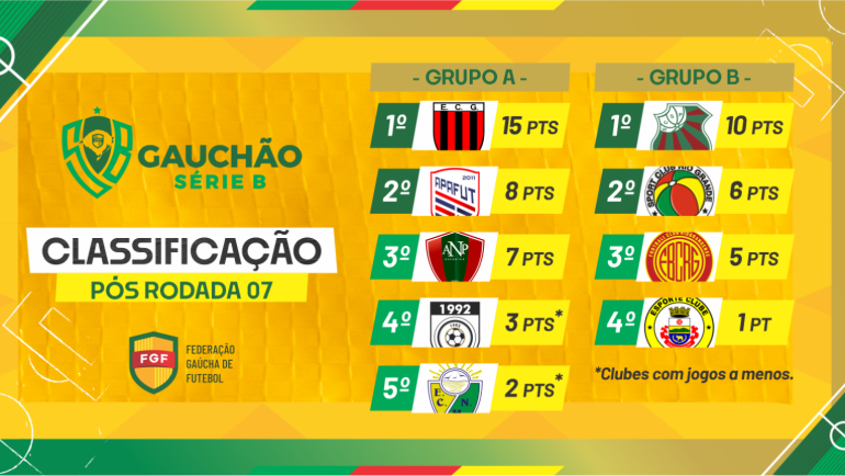 Líder e também invicto no Grupo B, o São Paulo-RG tem 10 pontos em quatro jogos. Na disputa pela segunda posição, estão o Rio Grande, com seis pontos, e o FBC Riograndense, com cinco. Os dois times se enfrentam na última rodada em confronto direto e por isso um deles não vai poder mais alcançar o Leão do Parque.