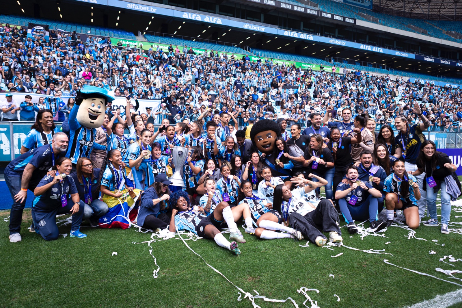 Gurias Gremistas celebram o bicampeonato | Foto: Matheus Pé/FGF