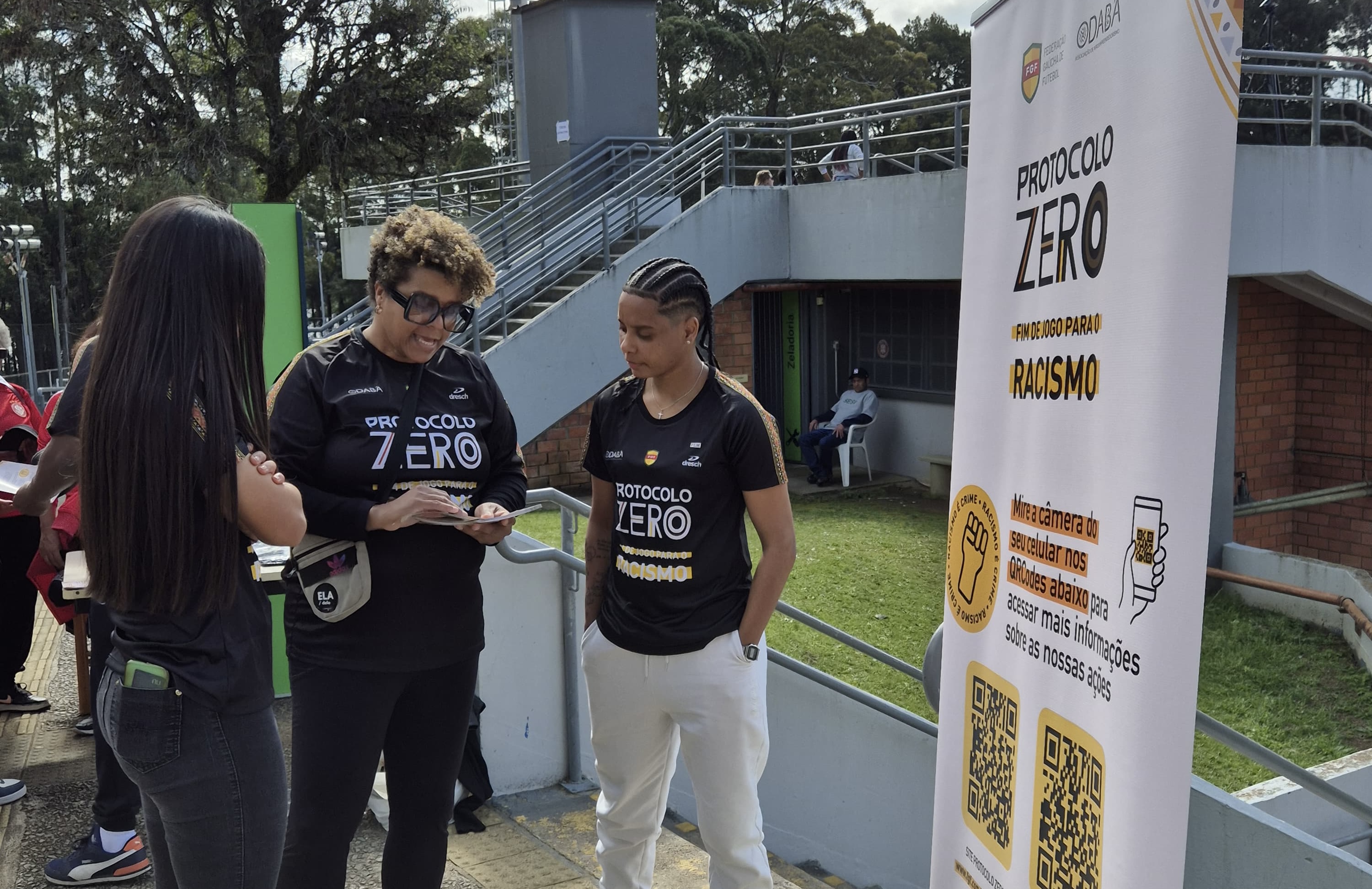 O projeto "Protocolo Zero: Fim de jogo para o Racismo" foi destaque mais uma vez no Gauchão Feminino 2025. A ação de conscientização ocorreu antes do clássico entre Juventude e Inter, no último domingo (7), no Complexo Esportivo do Sesi, em Caxias do Sul. A iniciativa da Federação Gaúcha de Futebol - FGF, com o apoio da Odabá - Associação de Afroempreendedorismo, visa reforçar a luta contra o preconceito nas comunidades do futebol.