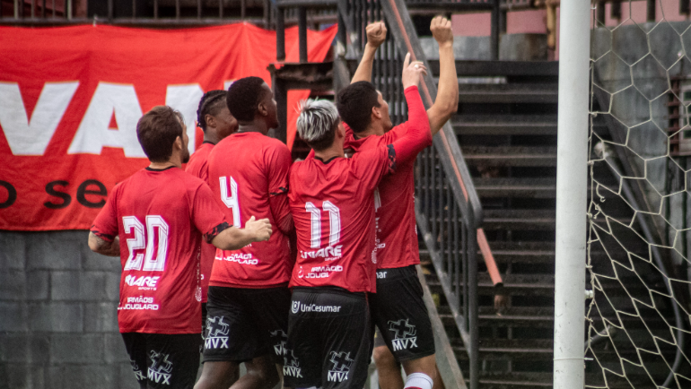 Jogadores do Xavante comemoram a goleada no Bento Freitas | Foto: Gabriel Costa/GE Brasil