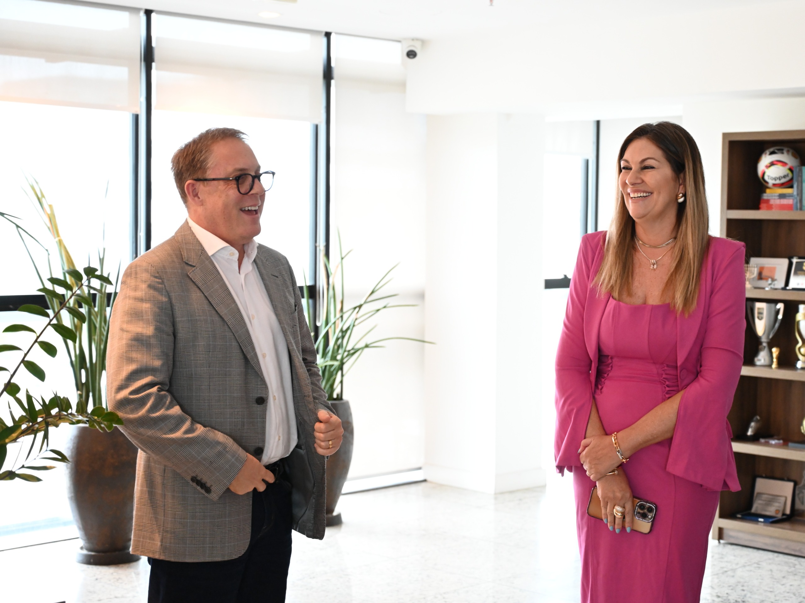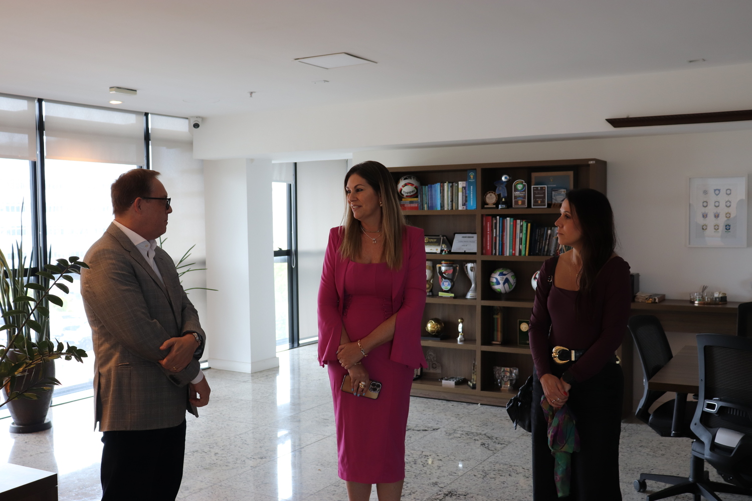 Durante a recepção na presidência, Luciano Hocsman esteve acompanhado pelo vice-presidente, Antônio Luiz Dal Prá, pelo secretário-geral, Mauro Rocha, pelo diretor financeiro, Marcelo Ducati, pelo diretor jurídico, Gilson Kroeff, e pelo diretor de segurança e ouvidor geral de competições, Rogério Stumpf. Na ocasião, foram discutidas ações de cooperação e o papel do esporte como ferramenta de conscientização social.