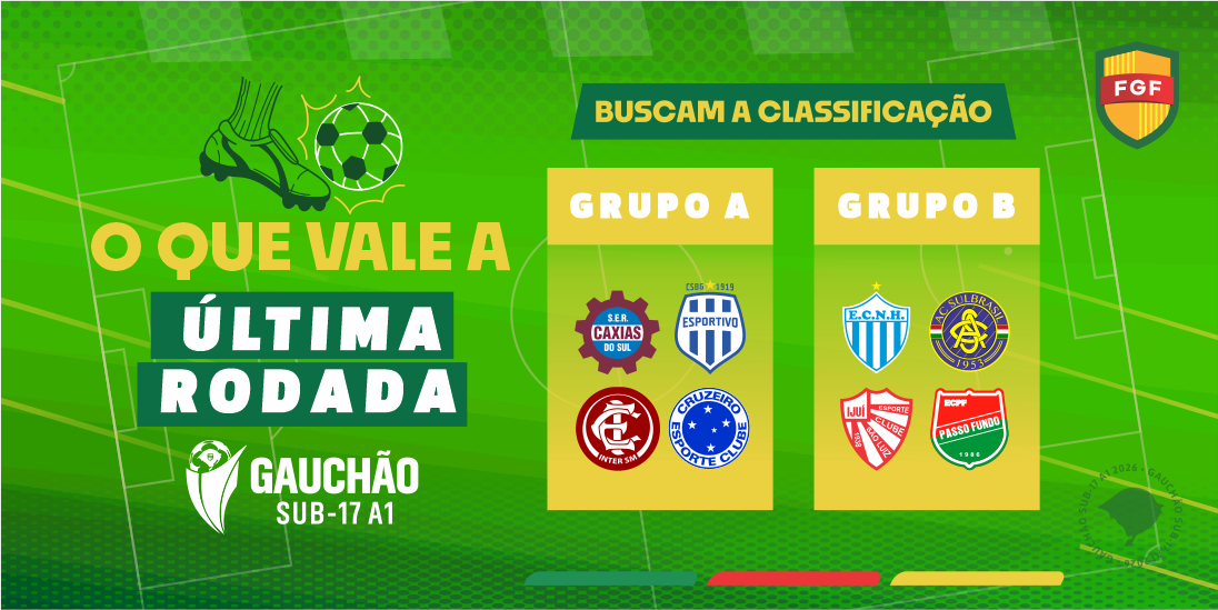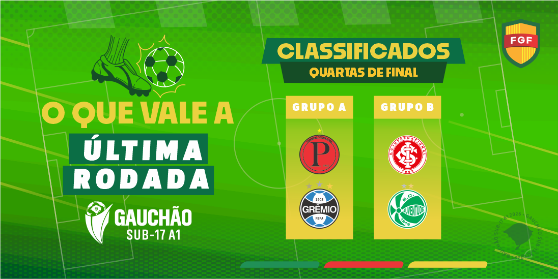 Após seis semanas de disputa, o Gauchão Sub-17 A1 2026 entra na última rodada da fase de grupos. Neste sábado (25), os jogos da 7ª rodada acontecem simultaneamente, às 15h. No Grupo A, Progresso e Grêmio já confirmaram suas vagas nas quartas de final. Mais quatro equipes disputam as últimas vagas no G-4 da chave: Caxias, Esportivo, Inter-SM e Cruzeiro de Santiago. Pelo Grupo B, o cenário se repete. Inter e Juventude também estão classificados e outras quatro equipes estão de olho nas vagas do G-4: Novo Hamburgo, Sulbrasil, São Luiz, Passo Fundo.