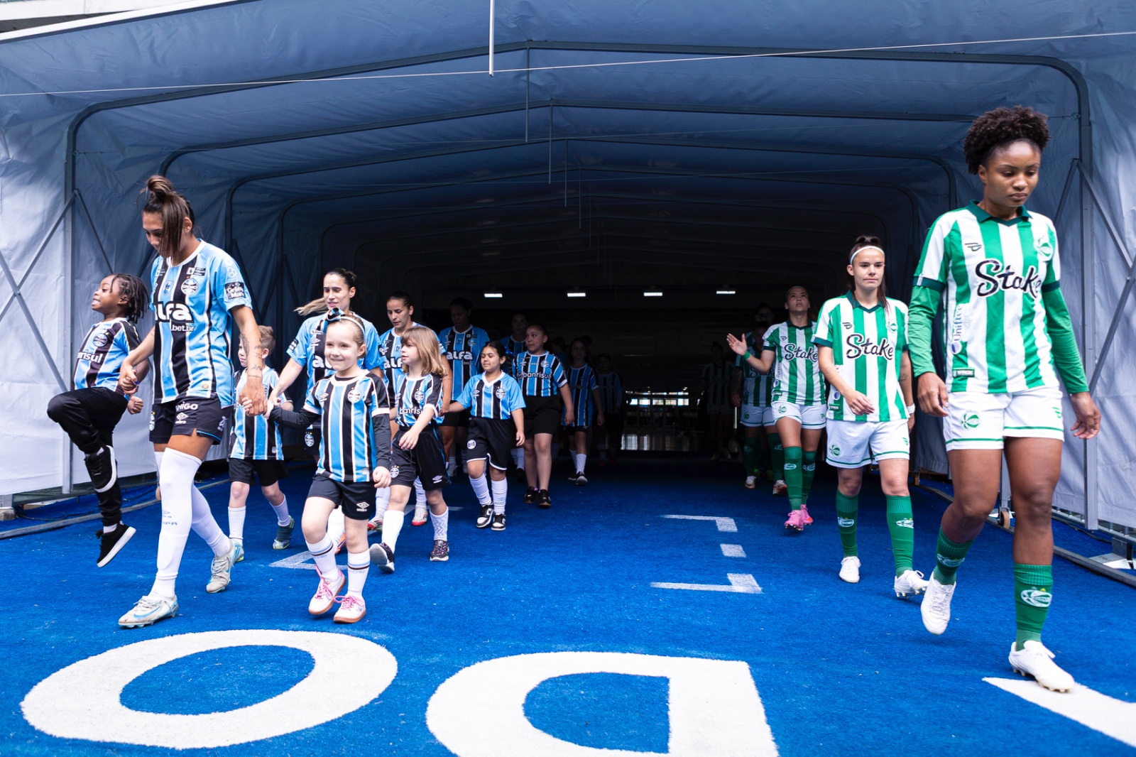 Os minutos iniciais na Arena do Grêmio foram marcados por muita intensidade das Gurias Gremistas, que buscavam aumentar a vantagem conquistada na partida de ida. Através de marcação alta, as Mosqueteiras conquistaram as primeiras chances concretas de gol da partida.