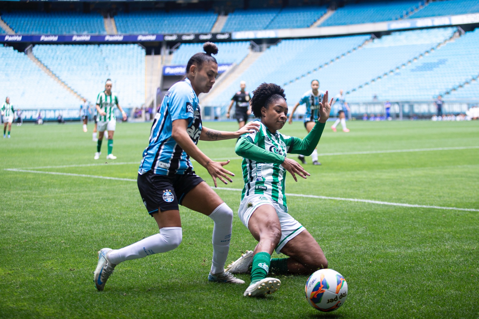 Na etapa final, a torcida presente na Arena do Grêmio presenciou ainda mais equilíbrio. As Gurias Gremistas administraram a vantagem e, nos avanços ofensivos, pararam nas intervenções de Renata.