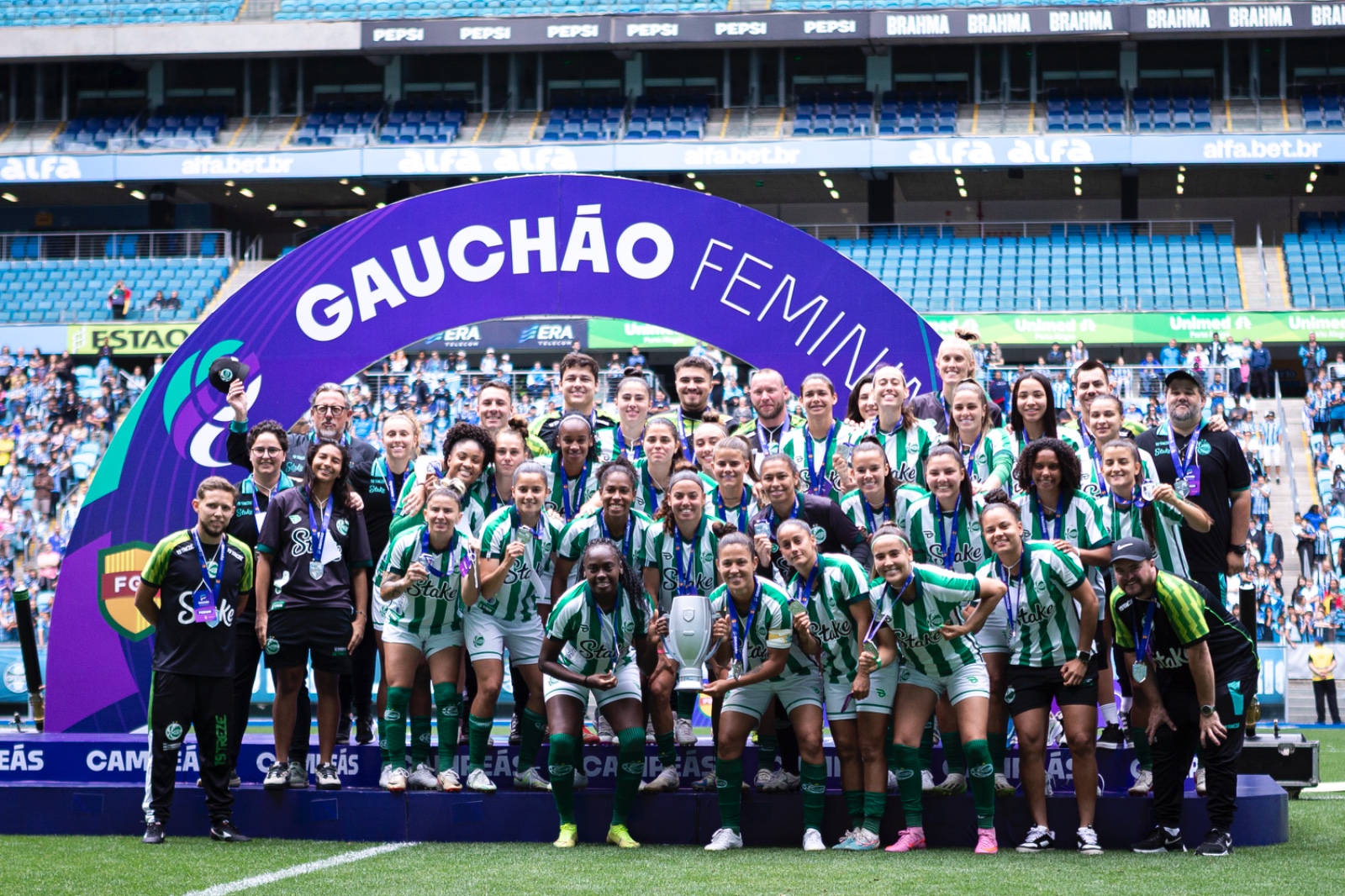 As Mosqueteiras do Grêmio são bicampeãs consecutivas do Gauchão Feminino. A conquista veio após a vitória por 2 a 1 sobre o Juventude, na manhã deste domingo (23), pelo jogo de volta da final, disputado na Arena do Grêmio. O Tricolor abriu o placar com Bia Santos na primeira etapa, enquanto as Esmeraldas conseguiram o empate com Rayane Pires no segundo tempo. Em cobrança de pênalti, Giovaninha garantiu a vitória e o título às Mosqueteiras. No duelo de ida, no Alfredo Jaconi, as Gurias Gremistas haviam vencido por 3 a 0.