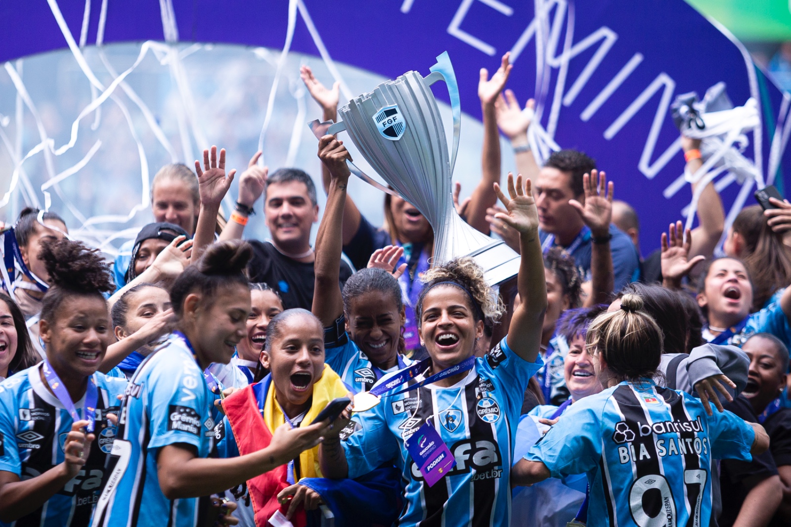 Gurias Gremistas celebram o bicampeonato | Foto: Matheus Pé/FGF