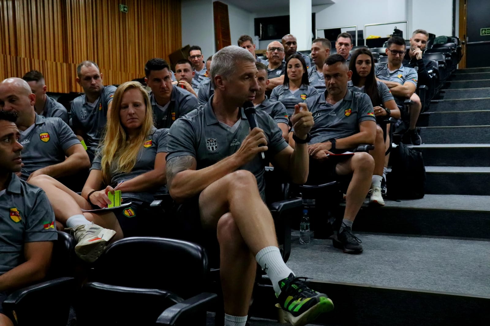 Outro ponto abordado no primeiro dia da pré-temporada foi a comunicação eficiente entre árbitros e integrantes do VAR. Conforme Leandro Vuaden, a comunicação tem que ser clara, concisa e sem ruídos: