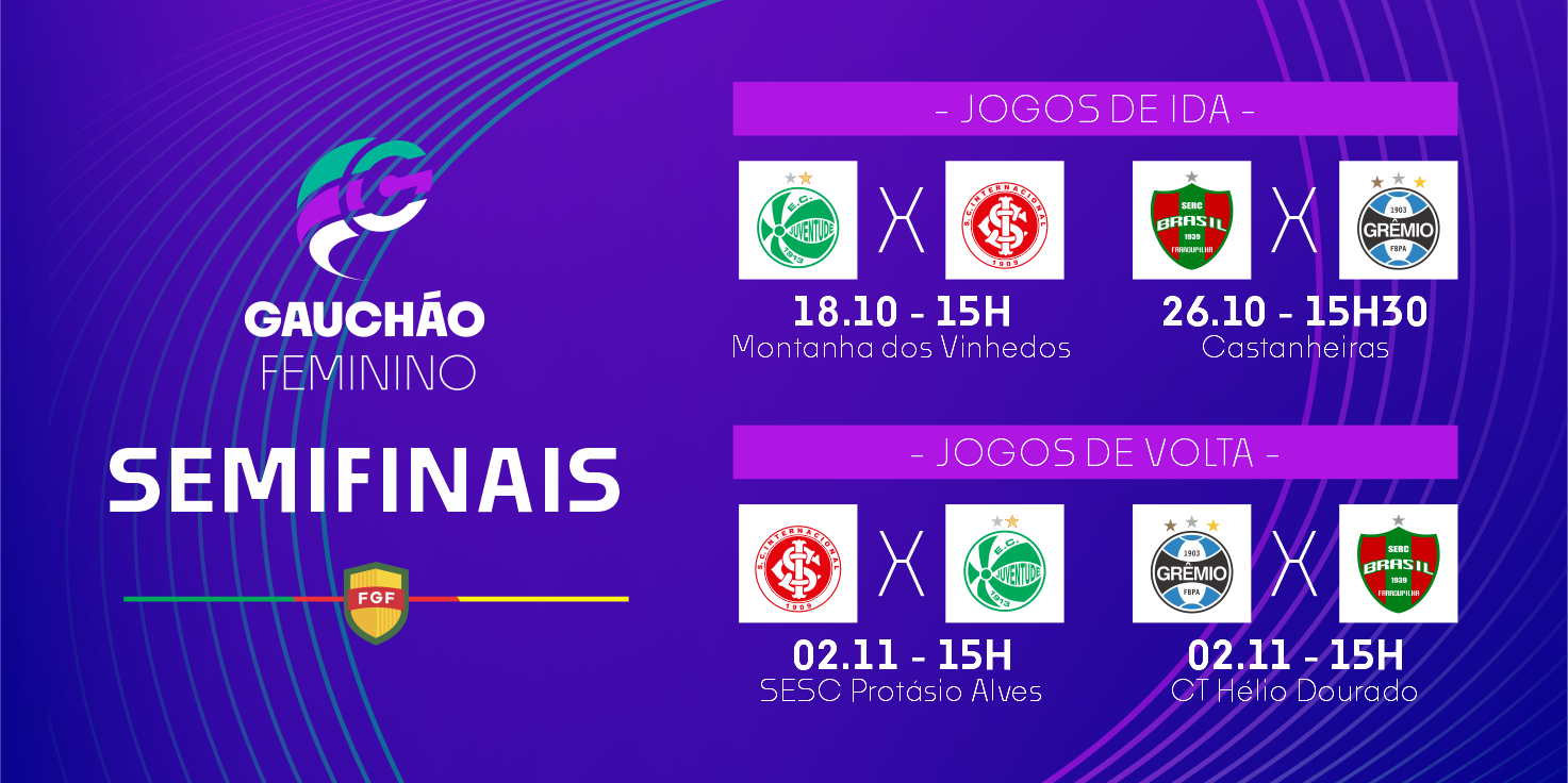 O Gauchão Feminino 2025 entra em sua fase mais decisiva com o início das semifinais, que prometem confrontos imperdíveis em jogos de ida e volta na busca pelas duas vagas na grande decisão. A primeira semifinal começa neste sábado (18), às 15h, colocando frente a frente Juventude e Internacional na Montanha dos Vinhedos. O duelo marca a busca das Esmeraldas do Ju e das Gurias Coloradas por uma vaga na grande final do campeonato. A emoção da segunda semifinal terá início no domingo (26) da próxima semana, quando Brasil-FAR e Grêmio se enfrentarão no Estádio das Castanheiras, completando o chaveamento que definirá as finalistas. Os jogos de volta estão marcados simultaneamente para o dia 02 de novembro, às 15h.